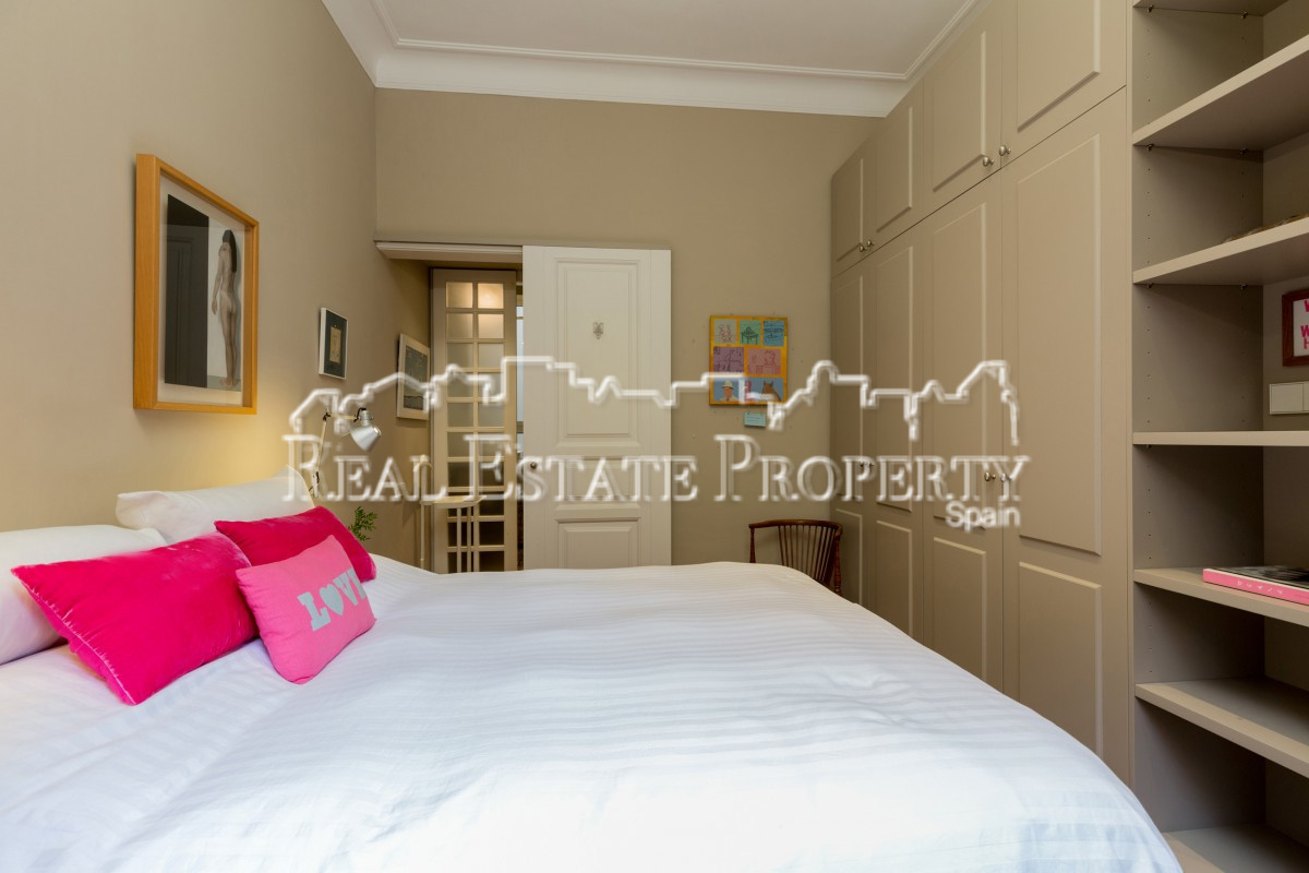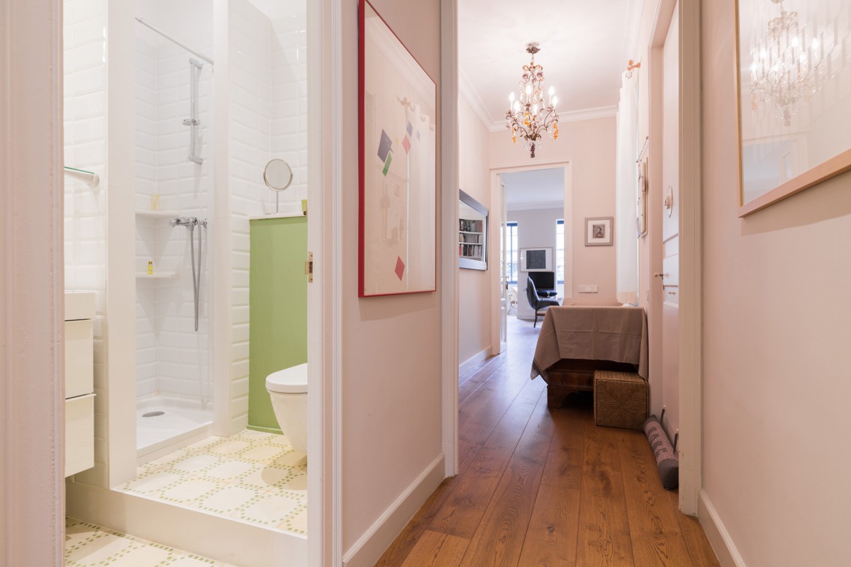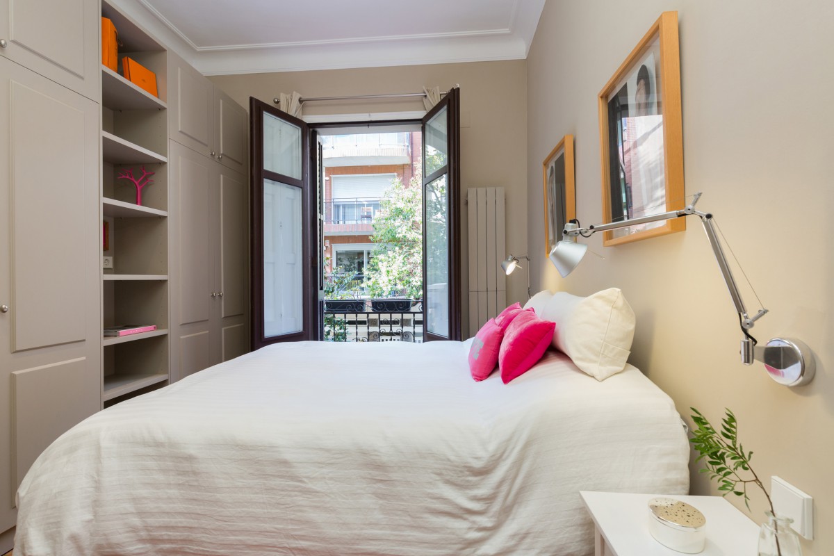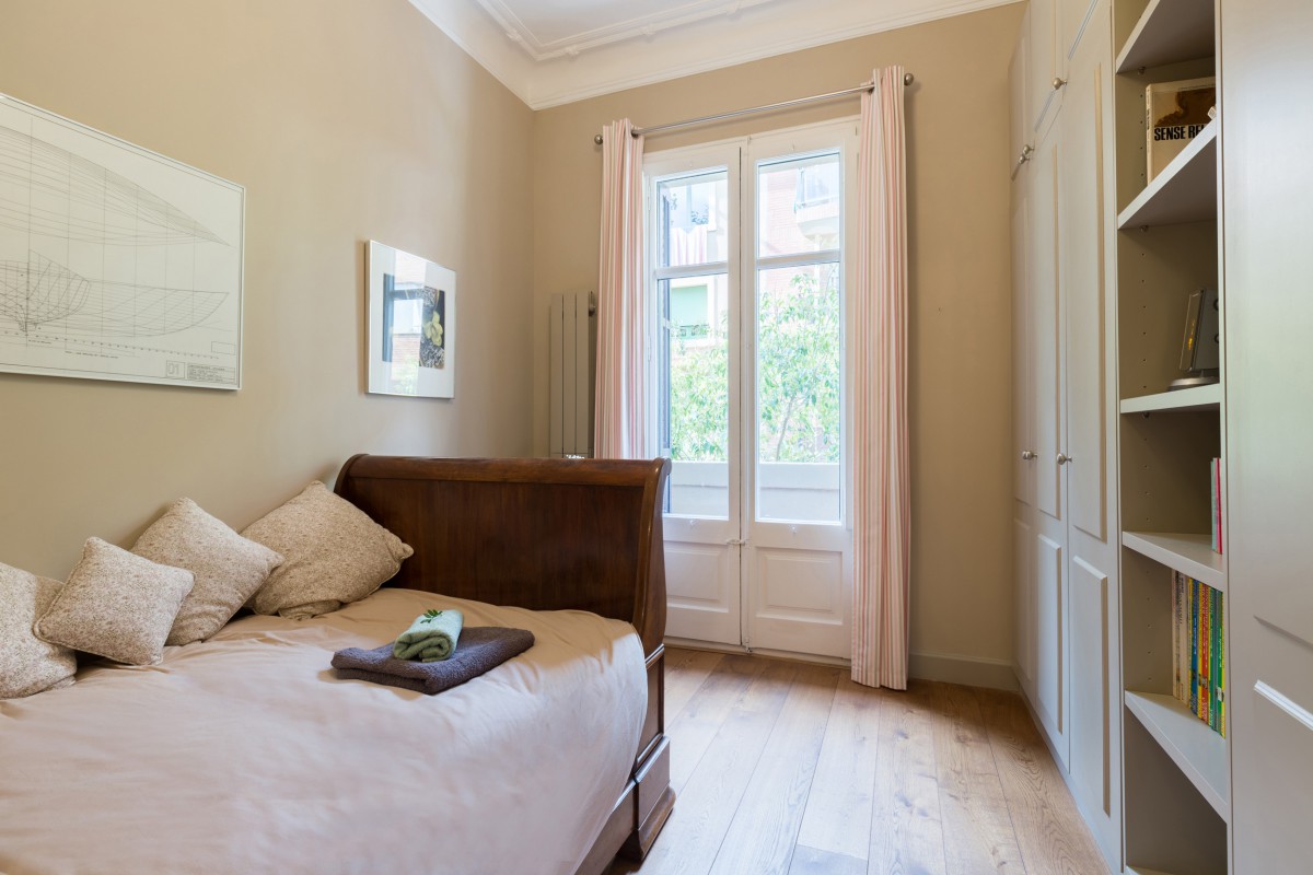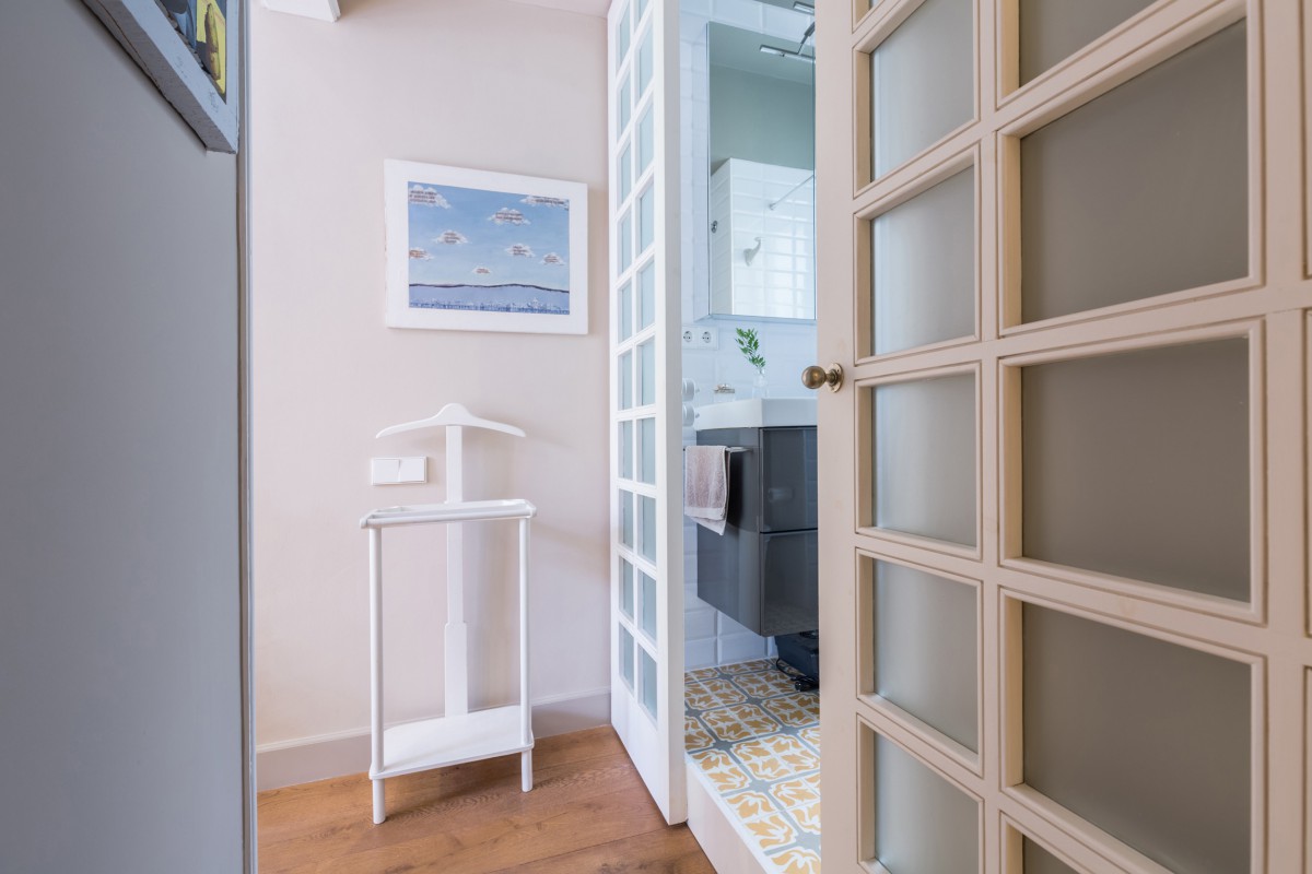 Este elegante apartamento, ubicado en una hermosa finca de principios de siglo XIX, cuenta con tres bonitos y funcionales dormitorios, uno con cama matrimonial y dos con cama individual. Dos de los dormitorios tienen un pequeño balcón para que puedas salir a saludar y despedir el día.