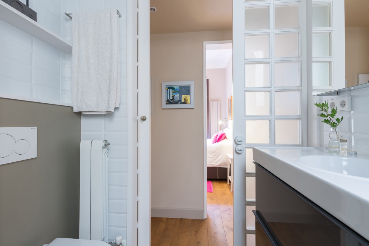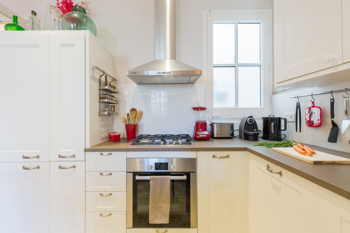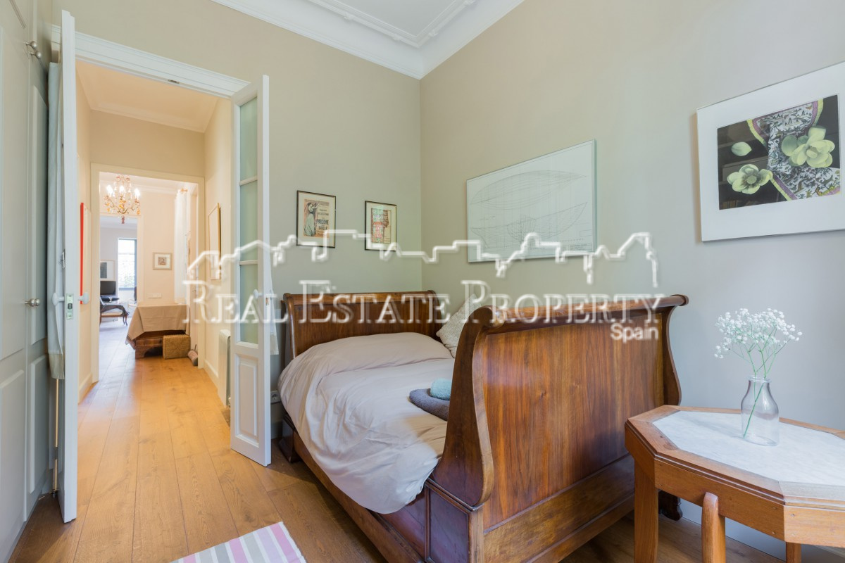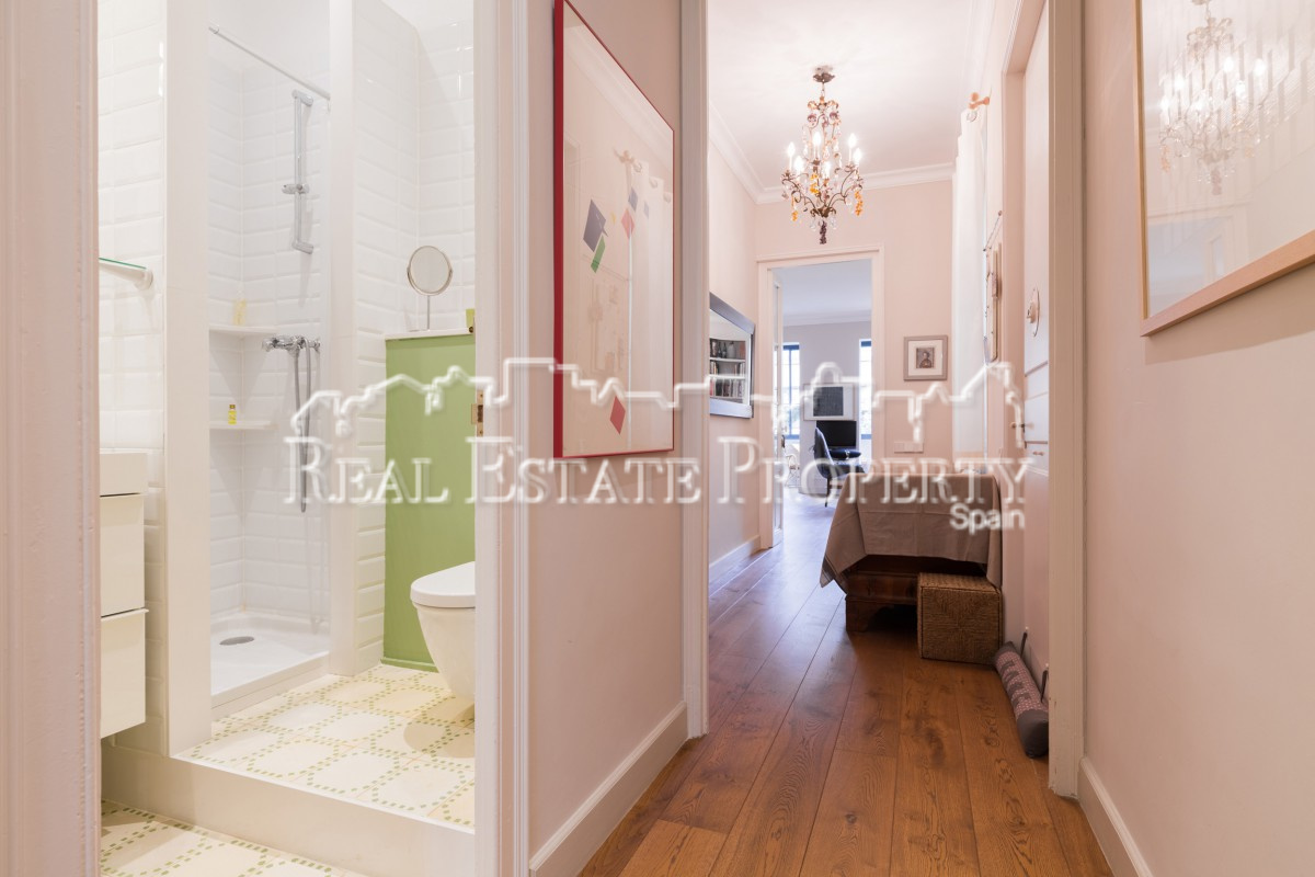 Este elegante apartamento, ubicado en una hermosa finca de principios de siglo XIX, cuenta con tres bonitos y funcionales dormitorios, uno con cama matrimonial y dos con cama individual. Dos de los dormitorios tienen un pequeño balcón para que puedas salir a saludar y despedir el día.