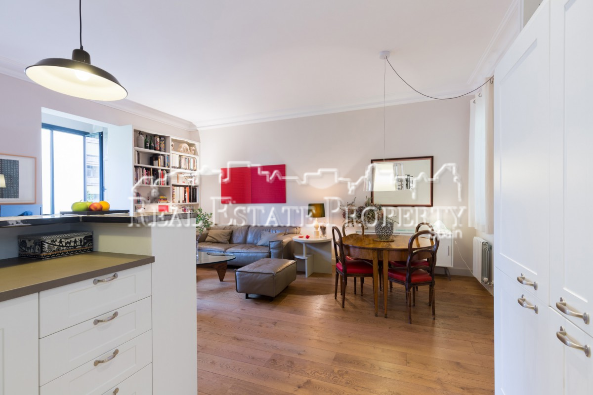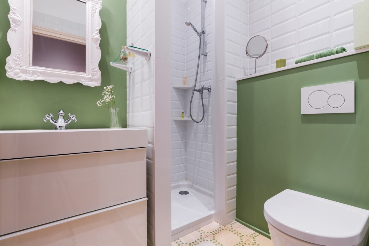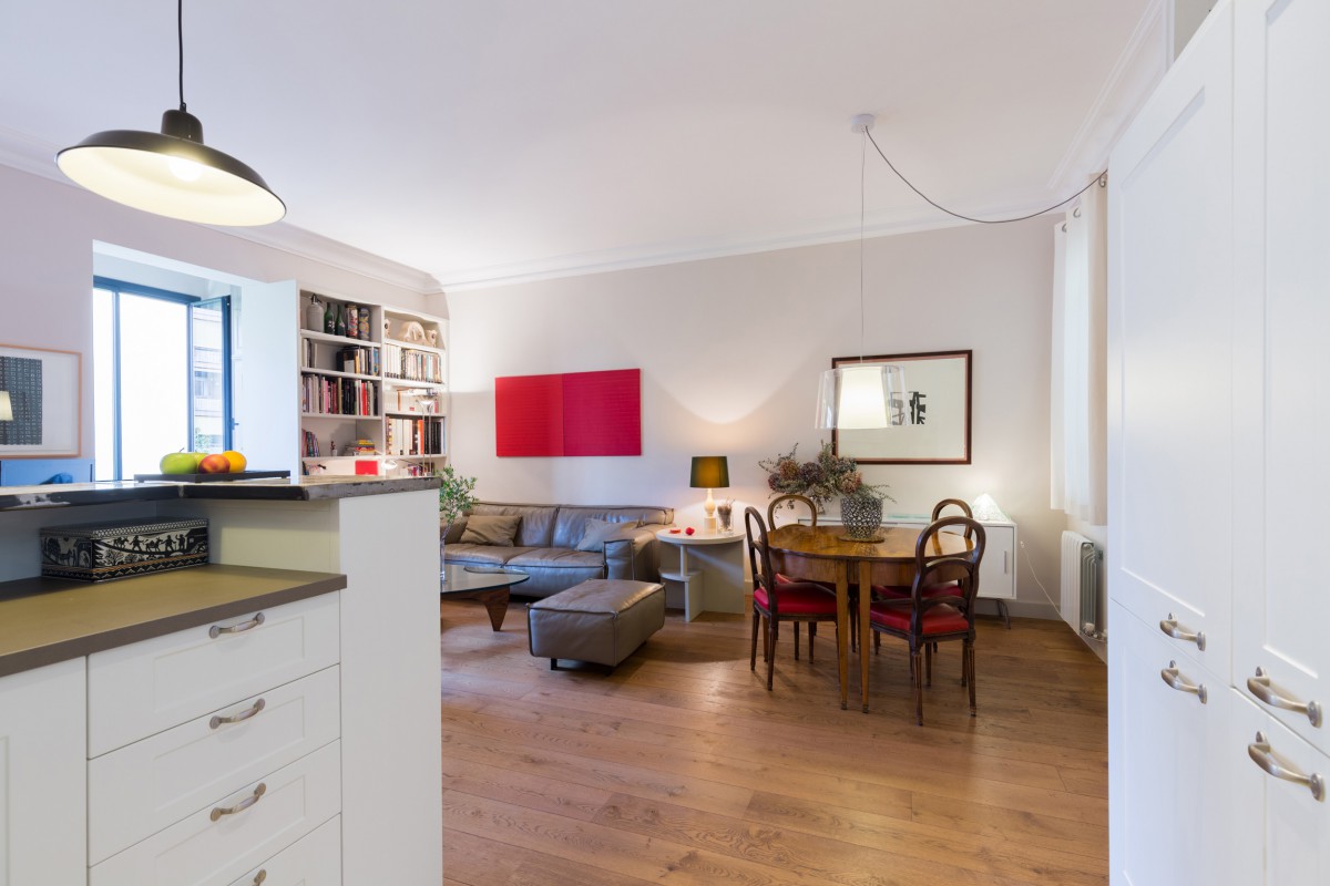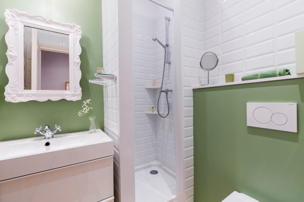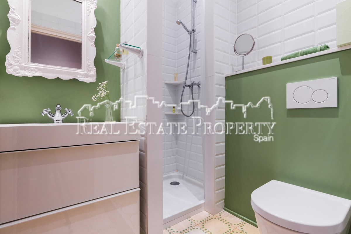 Este elegante apartamento, ubicado en una hermosa finca de principios de siglo XIX, cuenta con tres bonitos y funcionales dormitorios, uno con cama matrimonial y dos con cama individual. Dos de los dormitorios tienen un pequeño balcón para que puedas salir a saludar y despedir el día.