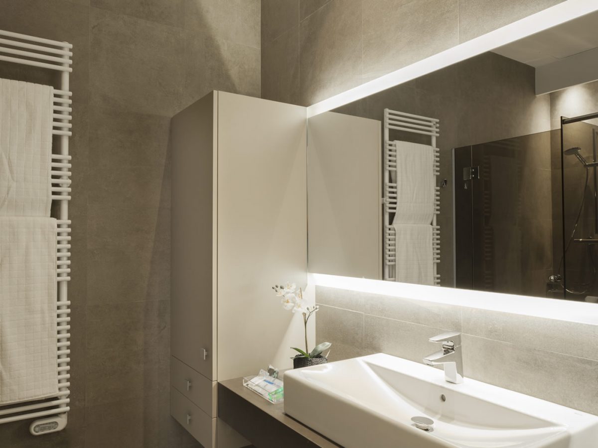 La sala de estar abierta cuenta con un cómodo sofá, TV y acceso directo a una terraza cerrada privada.